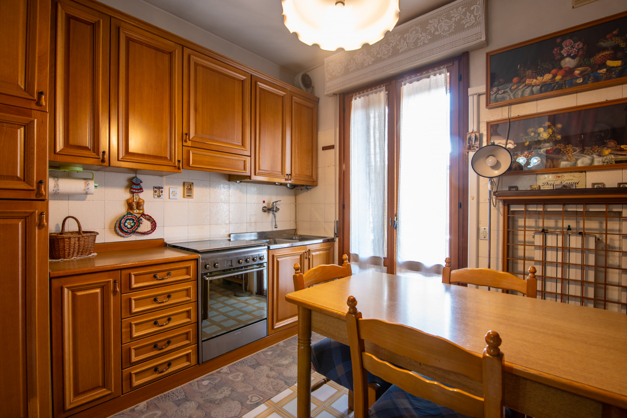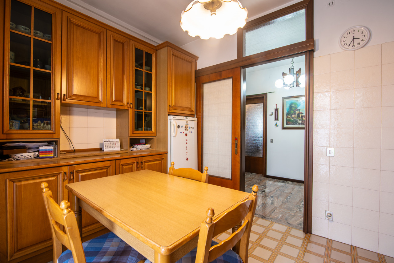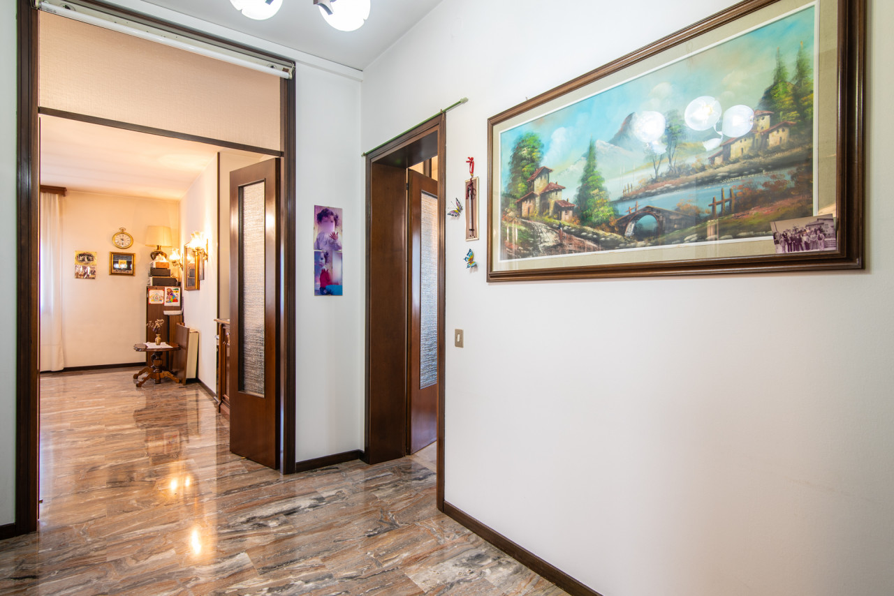 L’appartamento si apre su un ingresso che conduce a un’ampia zona giorno composta da soggiorno, zona pranzo e cucina separata, per un totale di circa 45 metri quadrati. Questo spazio è luminoso e ben distribuito, con accesso a un comodo poggiolo che affaccia su un contesto piacevole e riservato.